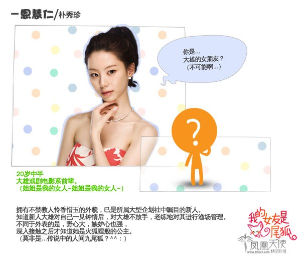 】:我的女友是九尾狐由曾为《快刀洪吉童》等电视剧撰写剧本的洪氏姐妹担任编剧,讲述了500年前被封印的九尾狐在2010年复活并与人类男子相恋的故事,将于今年8月开播