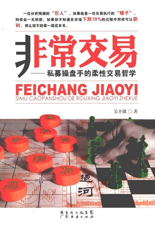 一位分析预测的“巨人”,如果他是一位交易执行的“矮子”。同样会一无所获,如果你不知道在市场下跌70%的过程中同样可以获利,那么您不妨读一读这《非常交易——私募操盘手的柔性交易哲学》。《非常交易——私募操盘手的柔性交易哲学》给投资者带来的可能将是一场投资与交易的思维革命,甚至直接减少投资者在危机中的重大损失。我们从老子的道家思想出发,是希望投资者能够在这个“熙熙攘攘”的利益场中具有自觉的“反贪反恐”意识,通过了解群体博弈中的弱者策略能够把老子的思想具体化、清晰化,并且通过对于《非常交易——私募操盘手的柔性交易哲学》独创定义的“三种机会”、“三不主义”、“三大确定性”等概念的掌握,能够充分认识风险控制与交易之路的重要性。 这《非常交易——私募操盘手的柔性交易哲学》最大的特点,是它区别于市场上绝大多数的技术分析书籍以及一些与国内A股相去甚远的学术理论书籍,可以说,它并不是什么“宝典”、“大全”、“速成”,而是一本让投资者“知其然也知其所以然"的实战工具书。它从最根本的哲学原则出发来结合实战技能的具体运用,完全是希望投资者能够从心理的层面来理解技术、从交易的角度来理解价值,因为炉火纯青的交易技术绝对不是几条线、几个形态可以涵盖的。