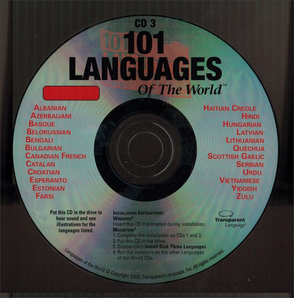 101 Languages of the World是由美国透明语言软件公司Transparent开发的语言学习软件,本套光盘包含101种语言的教程,适合英语较好且需要临时学习某种语言的用户。