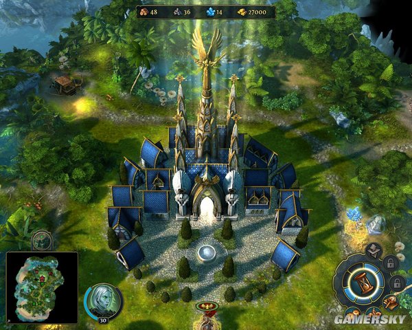 * 城镇内的种族特殊建筑机制呢?4选2,建筑的功能和种族的策略有关。比如,圣堂有Statue of Revelation,每周可以有一次机会让一个区域内的战争迷雾消失。亡灵有Altar of Eternal Servitude,可以用钱复活一些战斗中阵亡的兵力。