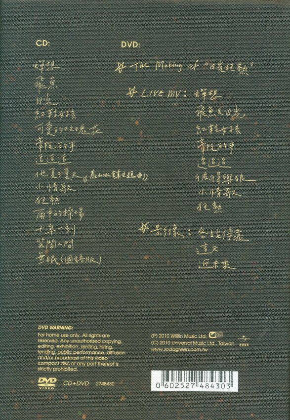 以成长与希望为题,2009年9月苏打绿揭开了《日光狂热》世界巡回演唱会的序幕,在台北小巨蛋举行两场演唱会,与歌迷们一起的 欢笑温馨的片段,全记录于这张最新演唱专辑《十年一刻》内。这是苏打绿继2007年《无与伦比的美丽演唱会》之后,在小巨蛋的第 一场大型演唱会,亦是自四季狂想「Project Vivaldi 韦瓦第计划」的《春‧日光》和《夏/狂热》后,将春天的世界民谣风与夏天 的狂飙摇滚一次过在演唱会中现场演绎「日光」、「小情歌」和「狂热」等大作,同时带来「十年一刻」、「笑闹人间」和「无眠」 三首新作,以最高的影音规格来打造国际水平的演出。