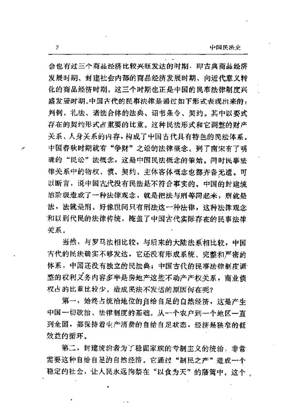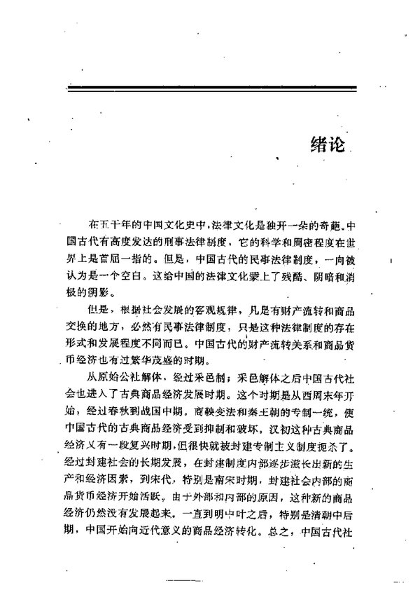 该书采断代体例,以财产流转为主线,改变了研究中国古代民法以婚姻家庭为主要内容的传统,这是本书最重要的学术创新和特色。该书在内容上主要探讨了财产流转中的物权法律关系、债权法律关系、契约制度、民事法律责任及救济等。该书以丰富的史料为基础,以扎实的研究为依托,精心设计了结构框架,系统揭示了中国古代几千年民法发展的脉络,气势博大,宏微咸备。该书的出版恢复了中国古代民法的原貌,澄清了中国古代只有刑法而没有民法等关于中国古代民法的错误观念,充实了中国部门法史的研究,对于整个中国法制史的研究也是一个有力的推动。