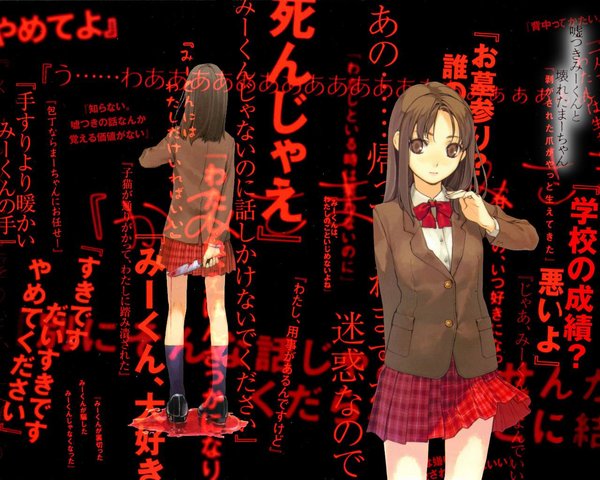 《说谎的男孩和坏掉的女孩》(嘘つきみーくんと壊れたまーちゃん),原书名意思为「说谎的阿道和坏掉的小麻」,自2007年以来已有十集,包括一本外传。台版方面则出到第六本.作者是入间人间先生.插画家是左。第一集《幸福的背景是不幸》(幸せの背景は不幸),2007年6月出版。 作者投稿时,主角性格是相反的,登场人物的名字则是与作者上的大学和爱知县、名古屋市的地名、车站名有关。如今电击文库宣布了作品真人电影版化,这样的一部黑化小说想必改编成真人版别有一番风味。