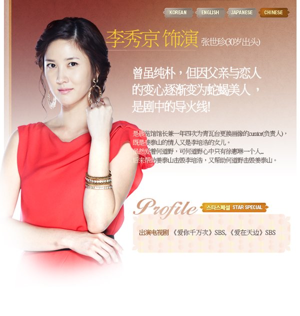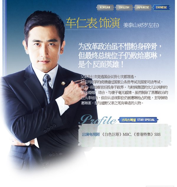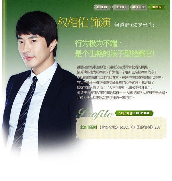 【中文剧名】:大物 【韩文剧名】:대물 【电视台】:SBS 【首 播】:2010.10.06 【集 数】:26集 【导 演】:吴宗录(钢琴、Style) 【编 剧】:未知 【演 员】:高贤廷 权相佑 车仁杓 李水京 李顺才 朴海美 【格 式】:RMVB 【语 言】:朝鲜语 【字 幕】:中文字幕 【制作出品】:韩剧天下 【