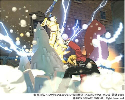 虽然TV版动画《钢之炼金术师》(以下简称《钢炼》)已经于去年完结,但还在连载中的漫画版以及去年举行的‘钢之炼金术师FESTIVAL’均获得了空前的超高人气。应广大‘钢炼’爱好者所求,SquareEnix终于决定在今年夏天推出这款《钢炼》的系列第三作!这一次,整个游戏的故事不仅将以完全原创的形式展开,制作方更请出了《钢炼》的原作者荒川弘进行故事的编写和原创角色的设定工作。相信本作又将会选掀起一股新的‘钢炼’热潮