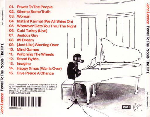 为了纪念披头四The Beatles灵魂人物、这位摇滚乐史上最具影响力之精神指标约翰蓝侬John Lennon的七十岁冥诞,唱片公司特地将其所有经典歌曲,重新以数位录制的方式,推出【2010全新数位录制】系列作品,用最完整的方式,让所有乐迷可以收藏这些经典歌曲。这张2010全新精选《Power To The People - The Hits》收录了John Lennon最具代表的音乐作品包括: Lennon最受欢迎,传颂千古的作品〈Imagine〉,这首让人不知不觉迷醉在它柔美旋律之下的歌曲,当年在英国金榜拿下冠军;John Lennon最动人的情歌之一〈Jealous Guy〉,以纤细的口吻,忠实地刻画出一个既好强又孩子气的男性形象;写给挚爱小野洋子的英国金榜冠军曲〈Woman〉,用歌曲面对自己的脆弱,谦卑地唱着自己对女性的亏欠,以及他满腔的感激之情;〈Happy Xmas (War Is Over)〉这首耶诞的应景歌曲,以及和平主义国歌〈Give Peace A Chance〉,全都传递着和平反战的理念,希望每位世人都能享有快乐的生活,免于在战争的阴影下担心受怕;翻唱自Ben E. King代表作的〈Stand By Me〉,让人不禁一同唱和;还有被美国告示牌选为「音乐史上最经典歌曲Top 53」的〈Starting Over〉,在当年横跨大西洋、霸占英美两地排行榜冠军单曲。