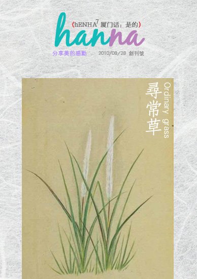 : 从厦门文化的横纵深处,抽离出一些让人们怀念的物什。 当然,身处快速度的当下,介绍一些好看好听好玩的慢休闲, 让一味快生活的人,慢下来,慢下来,停一停, 看看身边的美好事物,而不会一直为了赶路而走路。 hanna“是的” 《汉娜》也许是你生活的另一个开始。 创刊号 封面