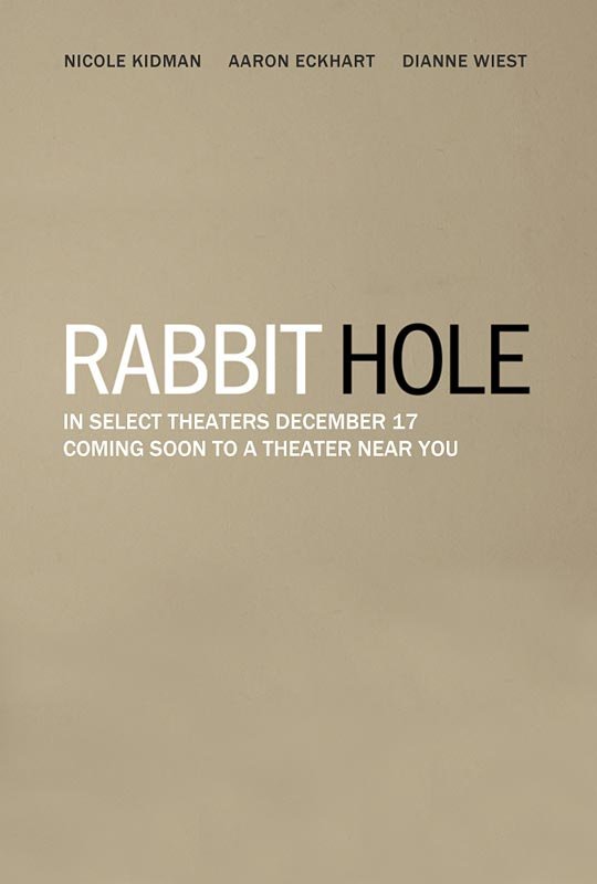 本片的主角是一对幸福美满的中产夫妇,他们收入不菲,四岁的儿子活泼可爱。谁知悲剧总是在不经意间降临,他们四岁的儿子在一次意外车祸事故中身亡,夫妻二人瞬间陷入了不可自拔的悲痛之中。原本他们认为时间可以治疗伤痛,但谁知儿子的死却引发了无数的问题,最终两人陷入了一场前所未有的感情风暴中。面对将来的生活他们会如何选择?这逐渐成为了他们面前最重要而问题。 影片名“Rabbit hole”直译兔子洞,来自《爱丽丝梦游仙境》,就是连接梦幻仙境的洞口。而其引申出的意思则是“出口”,影片以Rabbit hole为题,就是想探讨我们在生活中,如何去寻找每一个纷繁复杂问题的最终出口。本片是根据大卫·林赛-阿贝尔的百老汇同名戏剧改编,为了影片的质量过关,大卫·林赛-阿贝尔亲自操刀为爱作的电影版编剧。而自从获得奥斯卡后冠后就成为“票房毒药”的妮可·基德曼将再次努力走出阴影,只不过这回合作的对象是“双面人”艾伦·艾克哈特,两届奥斯卡最佳女配角得主黛安娜·维斯特的参演也为影片的整体实力保证了学员级别的水准。 RABBIT HOLE is a vivid, hopeful, honest and unexpectedly witty portrait of a family searching for what remains possible in the most impossible of all situations. Becca and Howie Corbett (NICOLE KIDMAN and AARON ECKHART) are returning to their everyday existence in the wake of a shocking, sudden loss. Just eight months ago, they were a happy suburban family with everything they wanted. Now, they are caught in a maze of memory, longing, guilt, recrimination, sarcasm and tightly controlled rage from which they cannot escape. While Becca finds pain in the familiar, Howie finds comfort. The shifts come in abrupt, unforeseen moments. Becca hesitantly opens up to her opinionated, loving mother (DIANNE WIEST) and secretly reaches out to the teenager involved in the accident that changed everything (MILES TELLER); while Howie lashes out and imagines solace with another woman (SANDRA OH). Yet, as off track as they are, the couple keeps trying to find their way back to a life that still holds the potential for beauty, laughter and happiness. The resulting journey is an intimate glimpse into two people learning to re-engage with each other and a world that has been tilted off its axis. 截图: