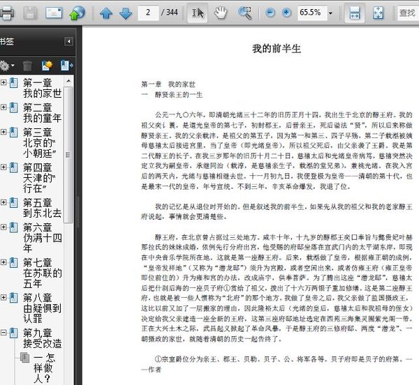 本书是作者的自传,作者从自己的家族背景写起,回顾了他在入宫做了皇帝、遭遇辛亥革命、满清皇帝退位、民国成立、北洋军阀混战、出宫、客寓天津,做伪满洲国皇帝、逃亡、直至解放后接受改造,成为普通公民的全部历史。他的写作,既是个人的历史书写,也由于他的特殊的历史地位,全方位地展现了20世纪上半期中国社会所发生的历史变迁。