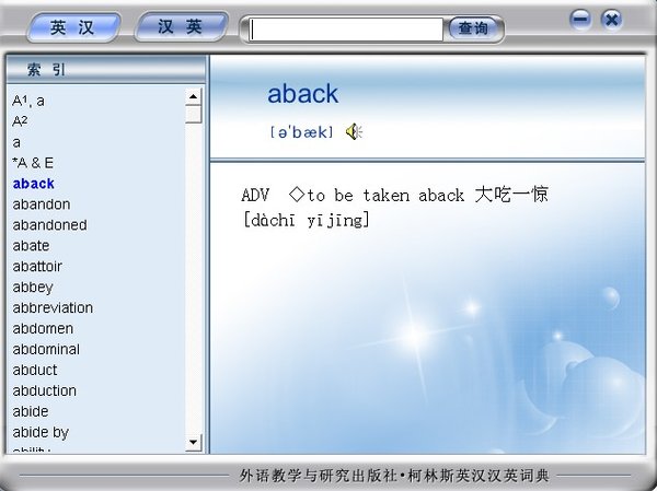 《英汉汉英词典》(外研社·柯林斯)由外语教学与研究出版社和英国柯林斯出版公司共同合作出版。柯林斯出版公司是一家以出版词典见长的出版社。自1824年出版第一部英语词典起,她出版词典的历史至今已将近有200年,属于世界上几大词典出版社之一,我国英语学习者所熟知的Collins Cobuild 词典系列即是其旗下的品牌。   《英汉汉英词典》(外研社·柯林斯)就是同样以出版词典为强项的外研社联合柯林斯出版公司共同推出的一部专门针对中国英国英语学习者编写的词典。   一、由中英两国词典专家共同编纂。本词典的英语词条是由以英语为母语的英国词典专家编写完成;中文词条则由中国社会科学院语言研究所专家在计算机词频统计的基础上编辑遴选出来。这样编纂出来的词典才能保证是真实的和可靠,而且为了保证译文规范、准确、地道,中英双方的词典编纂专家密切协作,对翻译和词义进行了深入的探讨、磋商。丰富翔实的例证突出表现了典型的真实语境。   二、基于世界上最大的语料库--柯林斯 Word Web 语料库。这个收词25亿的数字化英语宝库不仅包含了多种英式英语和美式英语的语篇,而且每日更新,保证了语料的真实、自然和时代感。   三、注重搭配。本词典不仅标出了动词、名词、形容词同介词的搭配,也提供了动词与副词,动词与名词,形容词与名词的搭配用法。   四、特设"词义提示"专栏。本词典的另一大特色是在多义项词条的每一义项之首提供了"词义提示",方便了读者对释义的检索。   另外各项语言知识专栏不仅诠释语法、用法难点,而且对有典型文化内涵的词,提供了详细的背景知识和介绍。附录涵盖大量日常交际用语、多种书信范例及公文写作指南,进一步增加了这部词典的实用价值。