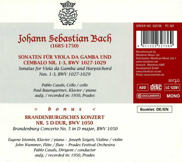 专辑英文名: Bach Cello Sonatas BWV1027-1029