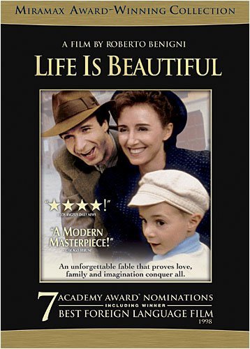 《美丽人生》这部影片是由意大利著名喜剧演员兼导演罗伯特.贝尼尼自编自导自演的一部黑色喜剧片,除了本届奥斯卡金像奖以外,该片还曾获得过总共二十八项国际大奖,在全球佳评如潮。《美丽人生》在美国的票房已经超过《邮差》,成为美国电影史上最卖座的外语片。迄今为止收入已近2300万美元,在全球更是突破1亿美元大关,而更令人称道的是,该片的制作成本仅仅为650万美元。 贝尼尼也由此成为奥斯卡影史上第一位以外语片拿到奥斯卡影帝的外国演员, 取得了无数电影人毕生梦寐以求的成功。 贝贝尼1952年出生在意大利的阿里佐,主要代表作有《一个快乐的传说》、《不法之徒》等电影,他的电影真实、简练,而且总是热情洋溢、充满笑容 。《美丽人生》是他所执导的第六部影片,片中他用全新的视角来反映战争的残酷,而观众则在笑声中领悟到人生的真谛:生活是美好的,哪怕一时被黑暗所笼罩,我们依然能够找到美之所在。