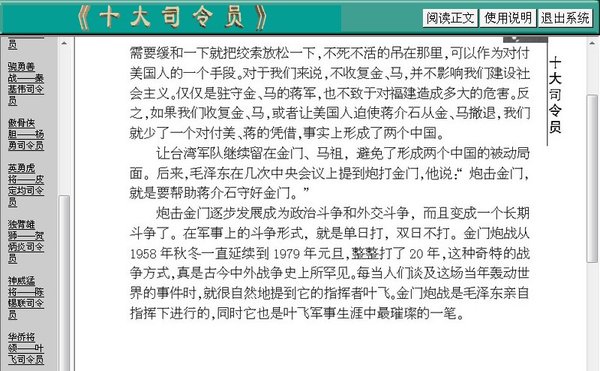 十大军区司令员富有传奇色彩的人生轨迹,从一个方面展示了大半个世纪以来中国人民革命斗争光辉绚丽的历史画卷。他们爬雪山过草地艰苦创业的革命精神,坚持真理无私无畏的战斗品格,不为名利廉洁奉公的高风亮节,以及他们在思想政治工作中积累的丰富经验等,无不体现了我党我军的优良传统,这是中国人民宝贵的精神财富,是鼓舞士气,教育后代的生动教材。本书有血与火的交融,有荡气回肠的儿女情长,有催人泪下的英雄故事,有栩栩如生的人物形象,十大司令员的经历曲折而复杂,性格独特而多样。他们的丰富阅历,不但具有欣赏性,也具有启迪性,书中展现的史实真相和深层内幕,以及十大司令员的雄才大略和丰富的内心世界,会让你对中国革命的历史和十位司令员的人格情操有一个全新认识。