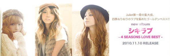 人气组合Juliet的四级主题精选专辑出炉,封面出了一如既往的粉红色logo还出现蓝绿黄三种颜色的团来代表不同的季节。专辑中收录了熟悉的「23:45」「ハルラブ 2」「アキラブ」等歌曲,还有些经过混音处理的曲子,总之是一张很不错做收藏的专辑,在寒冷的冬季带来丝丝暖意。