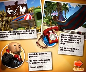 It's been a while since you left your lovely farm and village for a well deserved holiday in the sun. Then all of a sudden the mayor calls! He sounds all but happy. An evil real estate developer named 'Big Boss' has been destroying a lot of crops, stables and buildings at the village and your farm! This can't be happening! There is only one thing you can do; You have to return to your farm as soon as possible and stop the Big Boss from building ugly parking garages and ruining your beautiful land!
