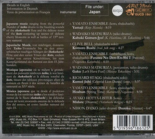 A stunning compilation of Japanese music ranging from the powerful thunder of taiko drums to the haunting sounds of the shakuhachi flute and the delicate notes of the koto conjuring up scenes of delicate cherry blossoms as well as battles of 15th century samurai. Info about music, musicians and instruments in English, German and French.