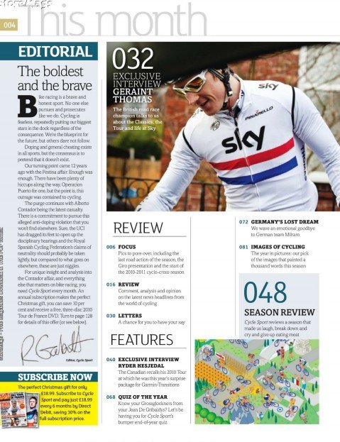 自行车竞赛更将自行车的功能发挥到极致,选手们必须与他的两轮座骑相依为命,凭藉著无比的意志力与体力穿梭於规定的道路间,无论刮风下雨或烈日当头,还是穷山恶水陡峭险境,在抵达终点的刹那都将化为乌有,也形成选手们挑战下一场更艰困战役的动力。这本英国的自行车专刊《Cycle Sport》即汇整了所有自行车运动的种种,像是赛事追踪、选手特写、器材引荐、赛程预告等等,都将让您同步体验自行车迷人与动人之处。
