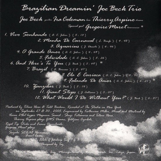 Joe Beck has had a long career, though he remains an artist deserving of wider recognition. These 2005 sessions are a relaxing affair that will delight fans of Brazilian jazz. Joined by bassist Ira Coleman and drummer Thierry Arpino (who is known for his work with violinist Jean-Luc Ponty), Beck's fluid electric guitar (while sometimes overdubbing an acoustic rhythm line) makes the most of each selection, playing a heavy dose of popular tunes by Antonio Carlos Jobim and his own tasty originals. Highlights among the Jobim compositions include the bittersweet "O Grande Amor" and the easygoing "Felicidade." Harmonica player Gregoire Maret is added for the leader's gentle bossa nova "And Here's to You" and Jobim's bittersweet "Falando De Amor." Beck also offers an inventive samba arrangement of John Coltrane's "Giant Steps" that adds a few twists while played at a slower-than-typical tempo, so it sneaks up on the listener. Highly recommended!