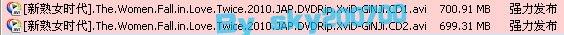 代码 ________.__ _______ ____.__ / _____/|__|\ \ | |__| / \ ___| |/ | \ | | | \ \_\ \ / | \/\__| | | \______ /__\____|__ /\________|__| \/ ginjigroup@gmail.com The Women Fall in Love Twice (2010) Supplier .........: Team GiNJi DivX Rls Date ....: 2010/12/09 DVD Rls Date .....: 2010/**/** Theatre Date .....: 2010/06/27 Video Format .....: XviD Video Bitrate ....: 1365 Kbps Resolution .......: 624 x 352 Language .........: Japanese Audio Format .....: AC3 VBR Audio Bitrate ....: 192 Kbps DVD Runtime ......: 124Mins Frame Rate .......: 23.976 FPS Subtitle .........: N/A Film Genre .......: Crime | Drama File Size ........: 50 x 15MB x 2 IMDB URL ......... http://www.amazon.co.jp/%E5%A5%B ... 1856584&sr=1-11