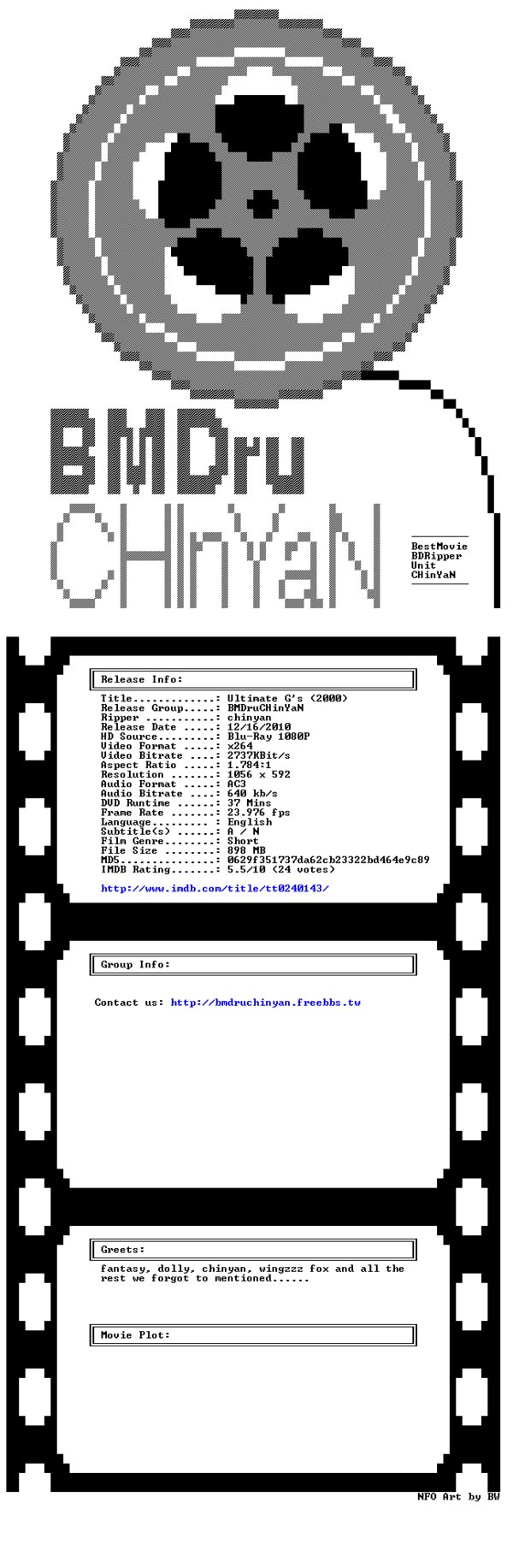 官方大管供源 昼夜长期保源 就让我们牵起手来 同心同力的守护这片后花园! 480P的小体积,绽放720P的大画质! 一如既往的高速高质,期待一如既往的支持! 《原汁原味原盘直压,VC平台同行首发,无偿造福大家》 顶好精品 会上瘾*@* http://bmdruchinyan.freebbs.tw 论坛开放注册中··· 【顶好精品压制规范】 原创 BMDruCHinYaN BDRip 官方压制标准: 1.制作源必须为Blu-ray(即片源为:蓝光原盘或BD REMUX),绝不使用经过转制的片源 2.视频编码一律采用X264,视频码率几乎不低于2000Kbps,音频编码一律采用AC3,音频码率清一色的640Kbps(一律内封原声音轨,港台片国产片一般具备双音轨,有些动画片多音轨,音轨几乎为5.1声道,即:6声道,极少数是4或2或1声道) 3.BMDruCHinYaN BDRip提升视频画质的三个重要压制参数:ref、subme、bframs;目前各值稳定在:ref=16,subme=9,bframs=16;接近各自参数的最高值 回顾:ref=5, subme=6,bframes=16 首调:ref=5, subme=9,bframes=16 二调:ref=10,subme=9,bframes=16 如今:ref=16,subme=9,bframes=16 期待:ref=16,subme=10 bframes=16 4.视频分辨率都控制在1000*400左右(稳稳超过480P标准分辨率,有些甚至达到720P级别的分辨率) 5.绝不采用可变形分辨率技术压制 6.容量上90min以内将控制在3CD,90-115min控制在4CD,115-140min控制在5CD,140min以上原则上不超过6CD(1CD体积:700MB左右) 7.BMDruCHinYaN BDRip的专属压片员专家:chinyan(人称:大师),唯一一位,兢兢业业,无怨无悔 社区小组:http://www.VeryCD.com/groups/@g2387745/