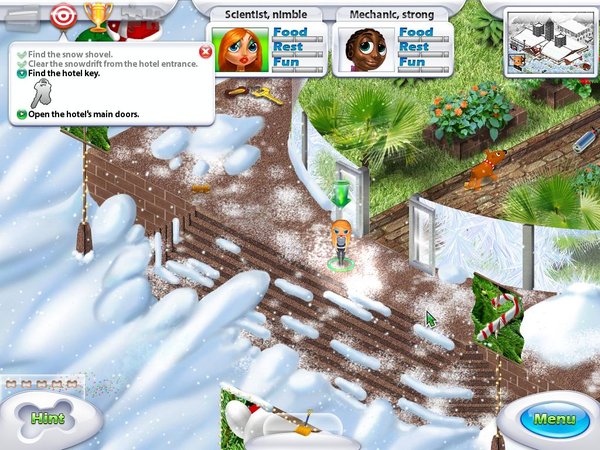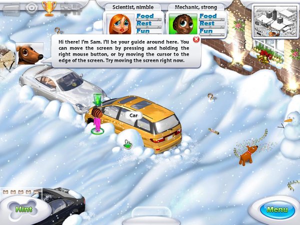 圣诞节快到了,bigfishgames及时推出了一款很有圣诞气氛的游戏,白皑皑的雪,活蹦乱跳的小狗,跑车,圣诞树,美丽的别墅~ 尽在《伟大旅程:圣诞》.