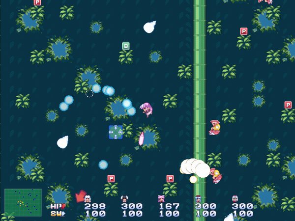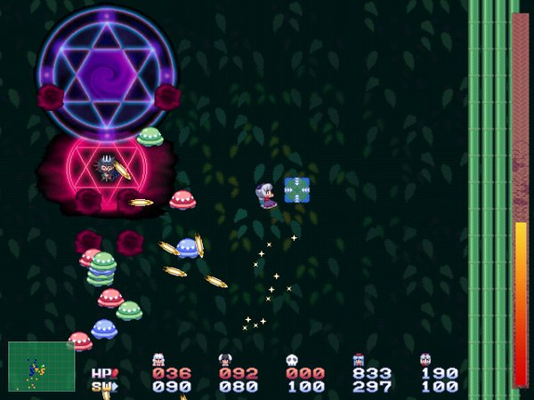弹幕反动ACT游戏。游戏的主要目的就是移动到关卡指定的出口…在精尽人亡之前。操作方法很囧,我就不想说什么了…你无法使用方向键进行移动,唯一的移动方法是利用后座力四处飘移!由于攻击时会减少气力,减少到0就会挂,所以满地图拼命的找刻符是必要的!囧… 游戏中有5个角色可更替,除了妹红外,还有大兔、二兔、慧音和永琳。每个人的特点都不同,很多时候需要彼此配合来过关。 配置要求: OS: XP/Vista/W7 CPU: PentiumIII 1GHz以上 内存: 256MB以上 显卡: VRAM64MB以上(128MB以上佳),支持DirectX9 解压即玩,推荐使用APP加载游戏。