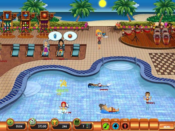 Help young Summer start her new job, and work her way to the top of Club Paradise! Keep the customers happy to earn tips and purchase powerful upgrades and new items. Start serving drinks poolside and move on to other areas of Club Paradise by using your Time Management skills. Make your picky clientele`s vacation the most relaxing and the most comfortable they`ve ever had to improve Club Paradise!