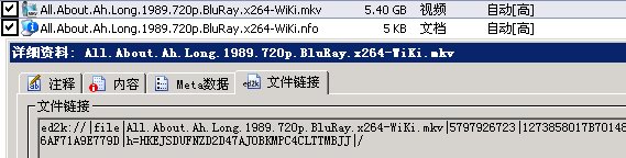 代码 All.About.Ah.Long.1989.720p.BluRay.x264-WiKi NAME.................: All.About.Ah.Long.1989 iMDB.................: http://www.imdb.com/title/tt0098694 GENRE................: Comedy ACT RATiNG...............: 6.9/10 (474 votes) ENCODE BY............: leeso RELEASE DATE.........: 2011.01.01 RELEASE SiZE........: 5.30 GB SOURCE...............: 1080p Blu-ray AVC Dolby-TRUEHD7.1/Dolby Digtal 6.1 RUNTiME..............: 01:39:20 ViDEO CODEC..........: x264_L4.1 @ 6500 kbps RESOLUTiON...........: 1280 x 692 FRAMERATE............: 23.976 fps AUDiO CODEC..........: Cantonese DD 5.1 CH @ 640 Kbps AUDiO CODEC..........: Mandarin DD 5.1 CH @ 640 kbps COMMENTARY...........: none SUBTiTLES............: none .x264.Info x264 [info]: profile High, level 4.1 x264 [info]: frame I:842 Avg QP:17.25 size:101534 x264 [info]: frame P:31445 Avg QP:18.36 size: 64320 x264 [info]: frame B:110616 Avg QP:20.44 size: 24721