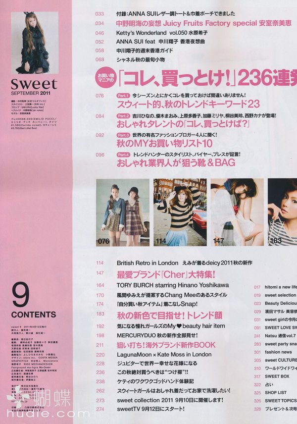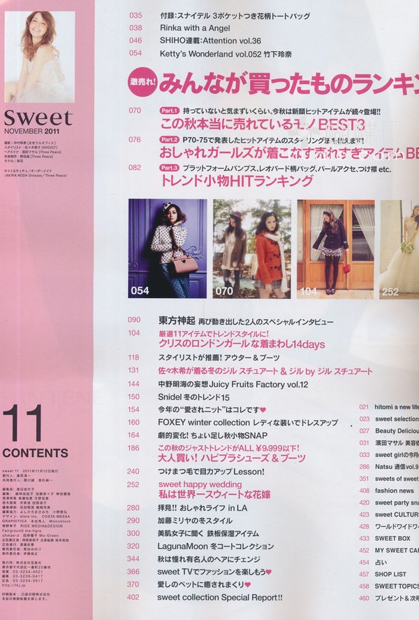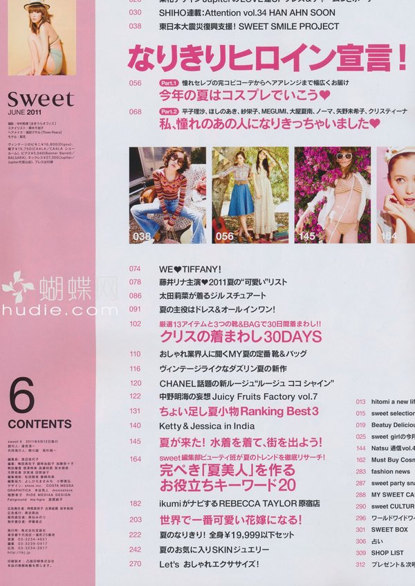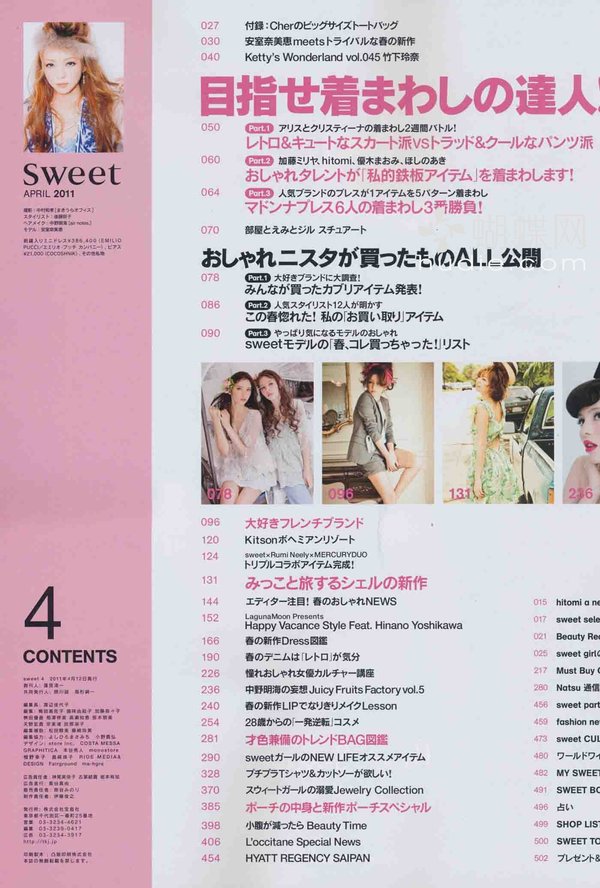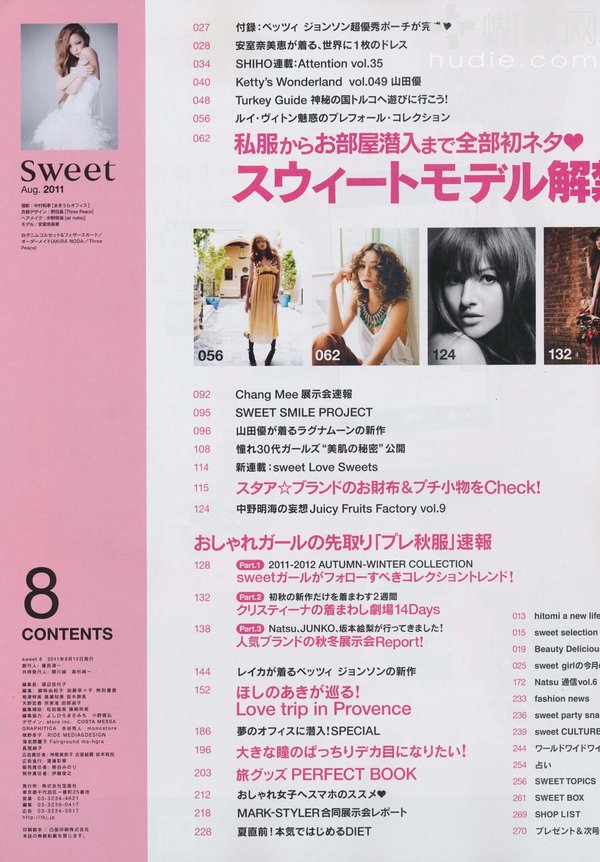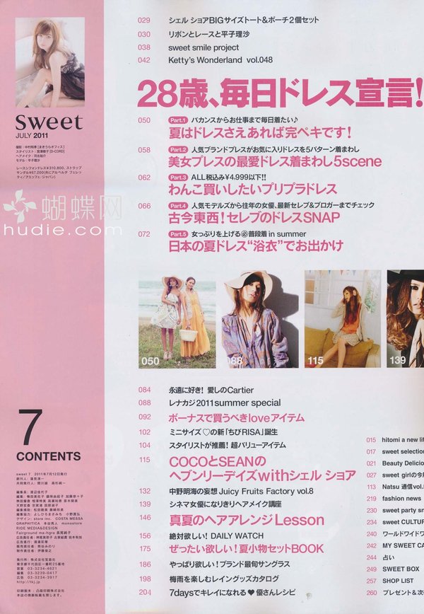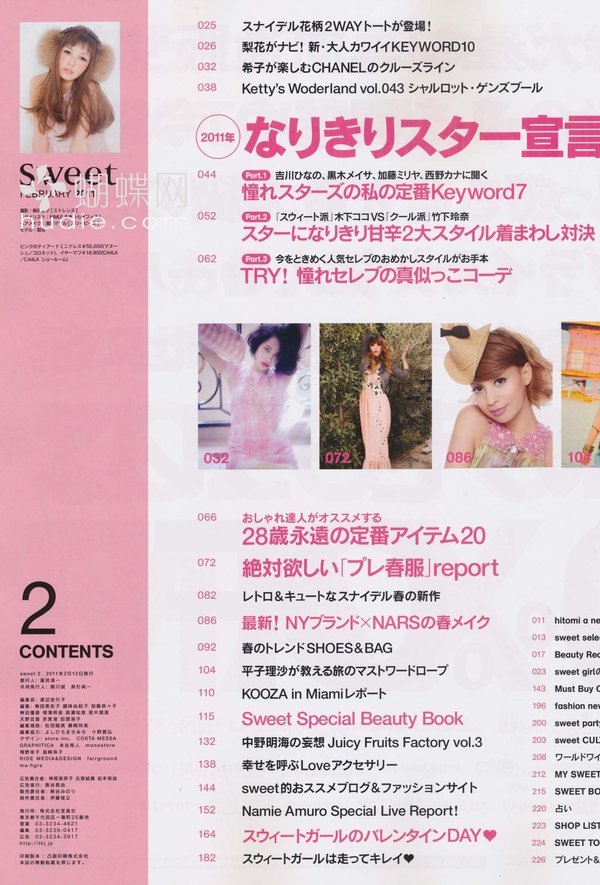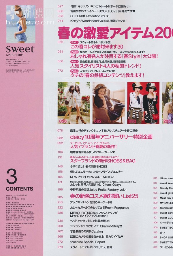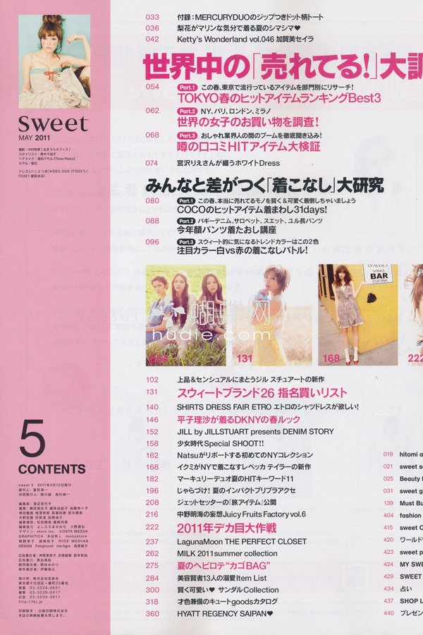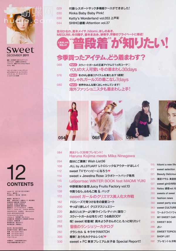 日本甜心少女时尚杂志Sweet,综合了粉色女孩生活中的个性时尚物件,尤其以可爱俏皮的服装款式与搭配为主,前卫的款式,得体个性的搭配,令无数女孩追宠倍至,热爱“甜心主义”,那就进入Sweet的粉色世界吧!
