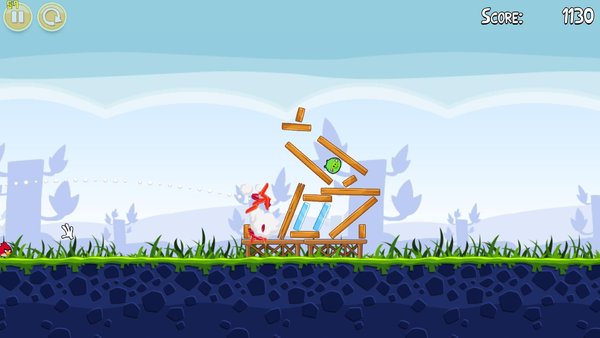 这款游戏的故事相当有趣,为了报复偷走鸟蛋的肥猪们,鸟儿以自己的身体为武器,仿佛炮弹一样去攻击肥猪们的堡垒。游戏是十分卡通的2D画面,看着愤怒的红色小鸟,奋不顾身的往绿色的肥猪的堡垒砸去,那种奇妙的感觉还真是令人感到很欢乐。而游戏的配乐同样充满了欢乐的感觉,轻松的节奏,欢快的风格。不过在进行游戏的时候却没有这样的音乐,有点可惜。但是将鸟儿们弹射出去时,鸟儿的叫声倒是给人很好笑的感觉。