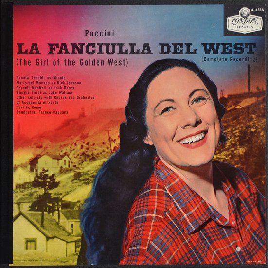 三幕歌剧“西部女郎”,是祁温尼G. Civinini 与章嘉利尼C. Zangarini 根据贝拉斯科David Belasco 的戏剧改编合作编剧,普契尼谱曲;1910年12月10日,由普契尼与贝拉士哥主持,托斯卡尼尼指挥,当代歌唱家卡鲁索担任剧中歹徒约翰逊,于纽约大都会歌剧院作盛大的首次公演,成绩辉煌。