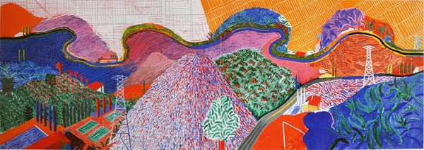 附帖,霍克尼的布面丙烯画 “穆赫兰道:通往画室的路”: