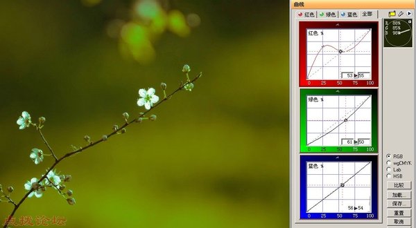 最完善的曲线调整,不用转换模式即可调整RGB/LAB/wgCYMK/HSB各种曲线设置,内建有调整精灵-只需按照步骤一步步即可设置 黑、白、中性灰阶自动调整最佳曲线。