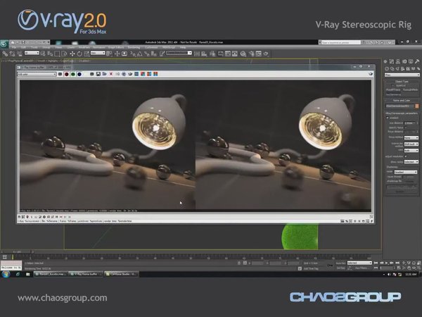 随着3D立体内容的到来,对产生这样内容的苛刻环境需求也是众所周知。对于无玻璃产品的渲染而言,每帧通常需要高达9次单独渲染。这种渲染标准几乎让行业停滞不前。Chaos Group的V-Ray 2.0的立体渲染支持将9次渲染时间压缩到2次,同时附带广泛的附加功能,以产生雄伟壮观的内容。