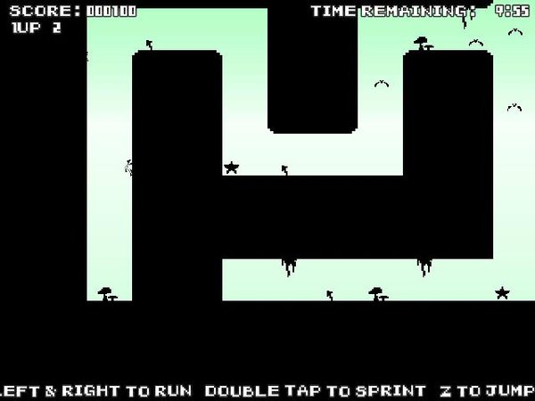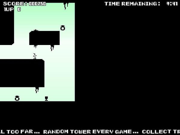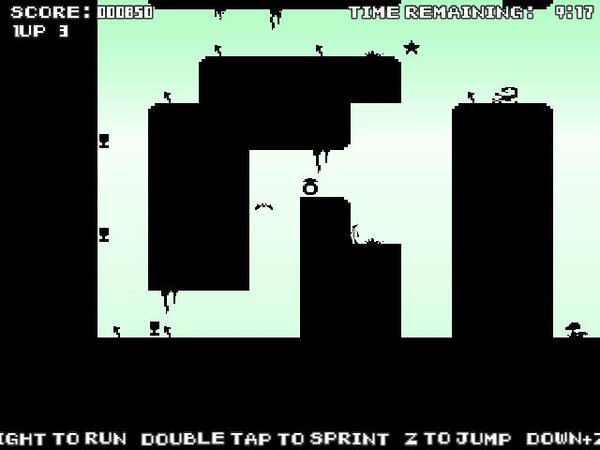 类型: ACT动作类游戏 [游戏简介]:   难度较高的黑白风格动作游戏,主角身手矫健,既是蝙蝠侠又是闪电侠~ 好吧,区别就是 本游戏的主角一碰就死... 按住↓方向键蓄力再按Z 可以纵跳很高 完全随机的地图和重重围堵的蝙蝠,蝎子等,会带给你非凡的游戏体验~