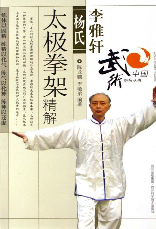 拳架,是人们对太极拳原理理解的外在表现,李雅轩先生太极拳拳架,之所以有一种恢宏的气势,有一种不怒而威的神情;之所以现在被人们广泛地推崇,这从根本上是由于他对太极拳的深刻理解和认识,这才在技艺上达到炉火纯青的地步太极拳架的要领,诸如立身中正,安舒松静,虚领顶功,气沉丹田,松肩垂肘,含胸拔背,内外相合,上下相随,用意不用力,迈步如猫行,运动如抽丝等,练拳者怎样在行拳中具体体现,怎样做才不偏离方向、不变味,《李雅轩杨氏太极拳架精解》给出了权威和形象的解答。