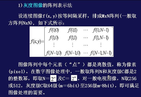 (1))图像变换由于图像阵列很大,直接在空间域中进行处理,涉及计算量很大。因此,往往采用各种图像变换的方法,如傅立叶变换、沃尔什变换、离散余弦变换等间接处理技术,将空间域的处理转换为变换域处理,不仅可减少计算量,而且可获得更有效的处理(如傅立叶变换可在频域中进行数字滤波处理)。目前新兴研究的小波变换在时域和频域中都具有良好的局部化特性,它在图像处理中也有着广泛而有效的应用。