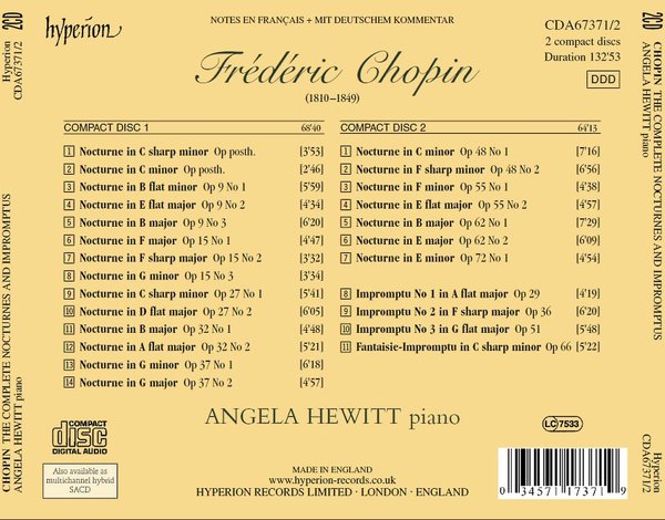 Angela Hewitt -肖邦夜曲与即兴曲全集 Chopin Nocturnes Hyperion UK[APE]