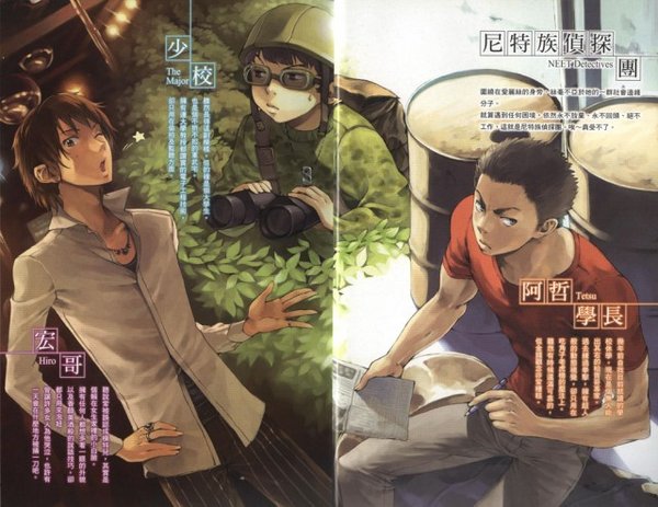 父亲居外,偶尔寄钱回来,有一个在职的姐姐,典型的尼特族家庭背景。因不断转学,惯于避免与人接触,但被彩夏带到尼特侦探团的根据地。在侦探社担任侦探助手的职务。曾经是花丸拉面店的职员,在平坂帮则是第四代的结拜兄弟,小弟们都尊敬的称呼他为“大哥”。虽然平时给人感觉只是打杂的存在,又因为其性格优柔寡断给人添不少麻烦,但是关键时刻总是能挺身而出,发挥决定性的作用。