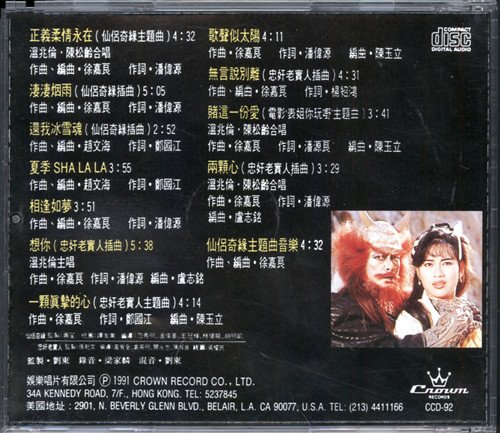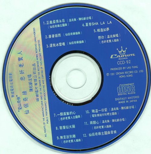 : 01. 正义柔情永在(仙侣奇缘主题曲) -温兆伦.陈松龄合唱 02. 凄凄烟雨(仙侣奇缘插曲) 03. 还我冰雪魂(仙侣奇缘插曲) 04. 夏季SHA LA LA 05. 相逢如梦 06. 想你(忠奸老实人插曲) -温兆伦主唱 07. 一颗真挚的心(忠奸老实人主题曲) 08. 歌声似太阳 09. 无言说别离(忠奸老实人插曲) 10. 赌这一份爱(电影表姐你玩嘢主题曲) -温兆伦.陈松龄合唱 11. 两颗心(忠奸老实人插曲) -温兆伦.陈松龄合唱 12. 仙侣奇缘主题曲音乐