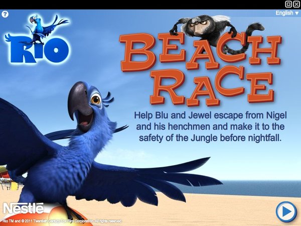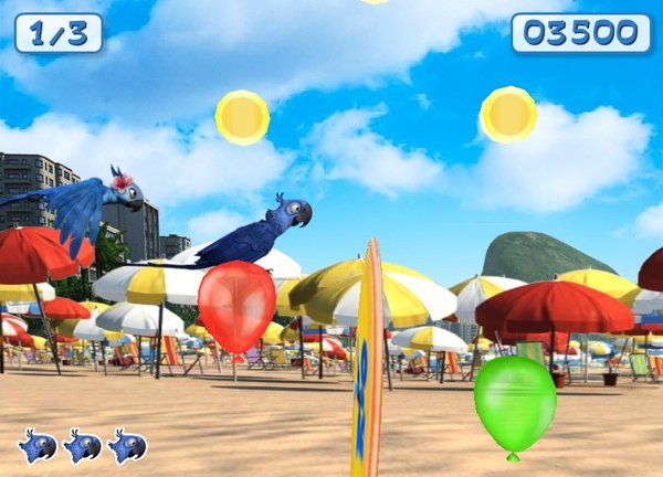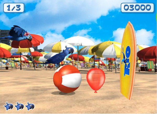 Rio: Beach Race - a small arcade game based on the same cartoon. Help parrots to get to the jungle before sunset across the beach. Collect bonuses along the way and do not fall into the pit.