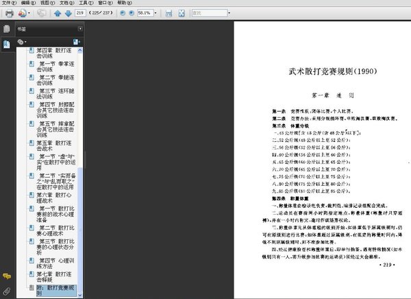 : 第一章 散打训练方法 第二章 散打连击身体素质训练 第三章 武术基本功训练 第四章 散打连击训练 第五章 散打连击战术 第六章 散打心理战术 第七章 散打连击释疑 附:散打竞赛规则