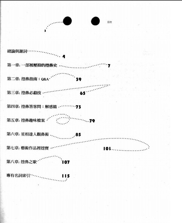 作者胡弹教授这位挖鼻达人,语不惊人死不休。不仅歪说历史,妙解星座,还凭著多年来的心血结晶,提供读者挖鼻的诀窍,追踪报导各种挖、掏、弹、拋的流派技巧与答问,旁及挖鼻的野史、美术作品、星座观、挖鼻之歌,以及大量跟挖鼻有关的精采插画。阅毕必能增添你挖鼻时的乐趣,直臻神魂颠倒之乐土。