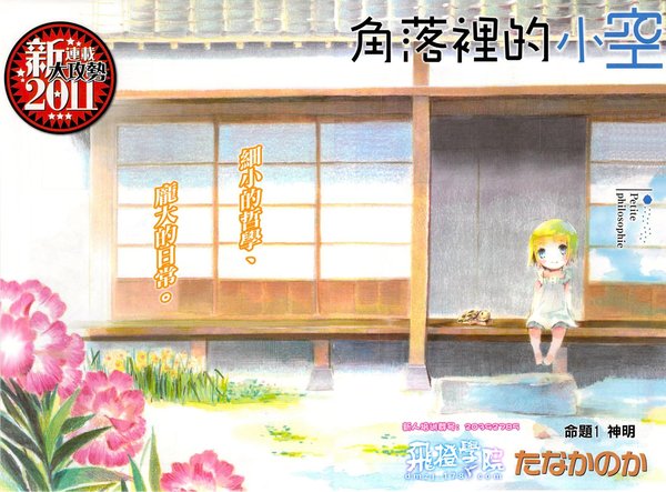 临近年末,Mag Garden社发售的漫画杂志「月刊Comic Blade」2011年1月号上迎来了一个名为「新连载大攻势2011」的专题计划,该专题计划从1月号的杂志开始不断的推出新的连载漫画。如今第一期的新作连载漫画已经出现,故事的标题定格为「角落的小空」,由曾经创作过「旅行的意义」的漫画家田中野华执笔绘制。这部打着“日常哲学”招牌的漫画作品「角落的小空」以乡村田间作为故事的舞台,描绘了喜欢从日常生活中总结出哲学道理的女学生小空与一只名叫柏拉图的乌龟的故事。众所周知柏拉图是古希腊伟大的哲学家,也是全部西方哲学乃至整个西方文化最伟大的哲学家和思想家之一,柏拉图化身为哲学小乌龟将和小空发生一段怎样的日常故事呢?如果喜欢哲学、喜欢乡村清新风格的话,那就要去看看这部作品了哦
