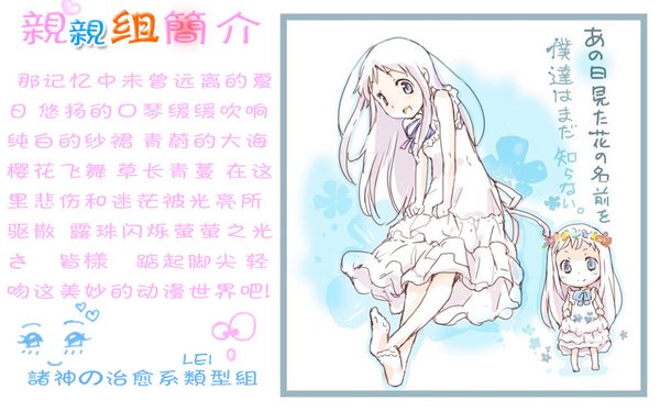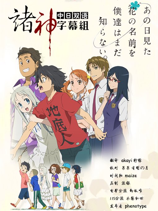 做字幕没有想象的那么难也没有想象的那么简单,需要的是持久的耐心和兴趣。《未知彼时花开名》这部动漫,这个名字很让我们纠结,呵呵,让我想起了儿时的回忆,希望大家也能保持关注(芽芽太活跃了话太多又无厘头,有时候让人翻着头疼啊)