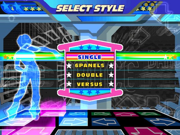 2 - VERSUS (双人) 3 - COUPLE (合作) 4 - DOUBLE (双板) 5 - SOLO (六键) COUPLE在国内称为情侣模式,谱面以双人合作为准,跟双板模式的谱面有点相似,但区别就是两边都有平均的箭头升上,1P空缺时2P会出现相应的谱面,2P空缺时1P也会出现相应的谱面,当1P与2P出现过相应的谱面之后,就会有同步谱面出现.这一点有玩过COUPLE的玩家都会知道,要求就是1P与2P的玩家能够配合应对谱面.也成为高级玩家的双人合作花式首选,这个模式在1~4代中出现过,5代之后已被废除. DOUBLE是早期初代DDR遗留下来双板模式,主要以一个人全踩舞台上两个十字为主,难度非常大,一般只有高手才会选的模式.谱面旷展到八键,比普通的四键谱面难度大一倍,同时也是高级玩家做花式好选择. SOLO模式出自于SOLO 2000,SOLO BASS这两个街机版本之中,后来的4thMIX SOLO也运用了这个模式.踏板主要为←↖↓↑↗→的单人板,在基本的←↓↑→里加上左上与右上这两个方向,比四键模式还要增加了一些难度,自4代之后,这种六向模式只有在家用版中出现,再也没有出过街机上. 有玩家说SP、CP、DP,但是你作为一个新人听不懂怎么办?,以下就是谱面的简化术语:SINGLE - SP、COUPLE - CP、DOUBLE - DP.