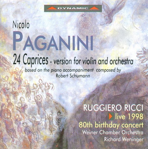 帕格尼尼的24首随想曲不乏一些名家的各种唱片版本,而真正能达到帕格尼尼那种音乐境界的却并不多,以至于海菲兹始终不肯为这部作品进行录音。而这张里奇的版本却有些不一样,因为它带有舒曼的钢琴伴奏。舒曼曾经为巴赫的无伴奏小提琴和无伴奏大提琴以及帕格尼尼24首随想曲谱写了钢琴伴奏,并于1853-1856年间完成了全部24首随想曲的钢琴伴奏。期间舒曼甚至还在患精神病,可见这部作品耗尽了他最后的一点心力。
