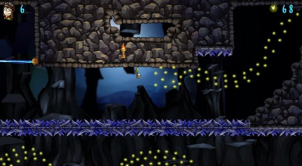 这是一个横版(?)动作类游戏,操作有点类似之前发过的《喂喂喂喂喂!》,玩家操控主角上下翻飞,收集闪烁的星屑和钻石。