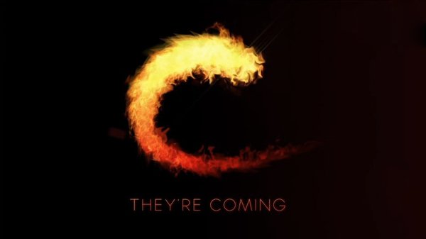 视频中,一个红色火球在黑色背景中画出了一道弧,最终形成了《魂斗罗》标题画面那个令老玩家们泪流满面的"C"字图案。随后下方打出了一串文字:They're coming(他们来了)。