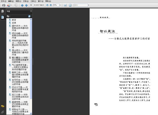 太极拳,是一种武术项目,也是体育运动和健身项目,在中国有着悠久的历史,起源于古代骑兵的枪法、长柄大刀法,其基本用法是:开、合、发,踩着高跷来使用长枪、长柄大刀,太极始于无极,分两仪,由两仪分三才,由三才显四象,演变八卦,依据“易经”阴阳之理、中医经络学、道家导引、吐纳综合地创造一套有阴阳性质、符合人体结构、大自然运转规律的一种拳术,古人称为“太极”,本书对话内容涉及到太极拳的各个方面和层面,有理论、有技术,也有发展,有的同一个问题特意由不同的名家从各自的体会分别阐述。